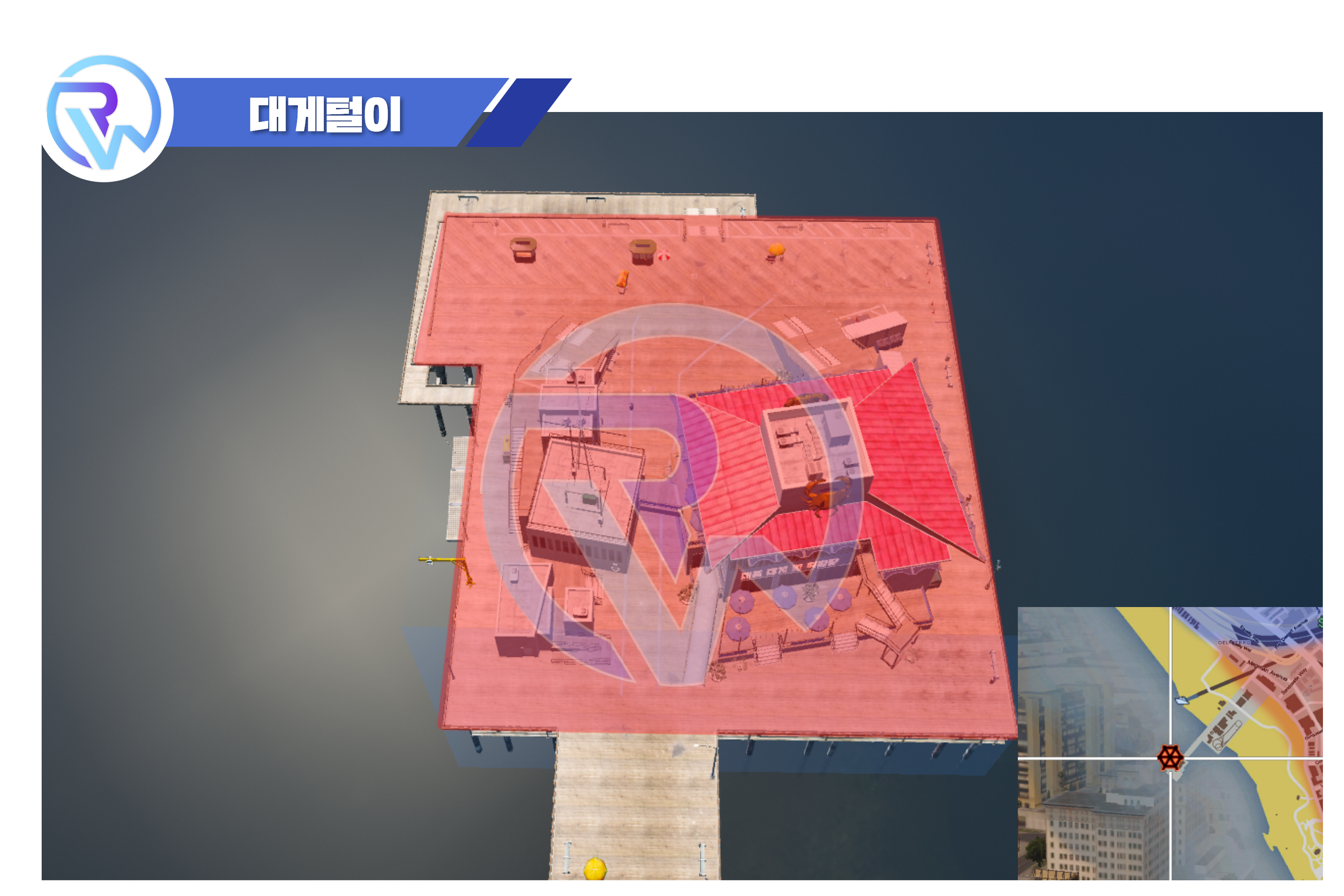 2.횟집내부 외부는 보라색 원을 벗어나지 않는한 자유롭게 사용가능하나 옥상은 사용금지 된다.