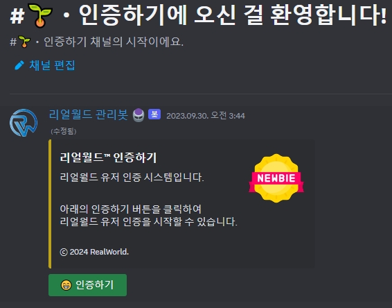 리얼월드 디스코드 인증하기 채널에서 인증을 받을 수 있습니다.